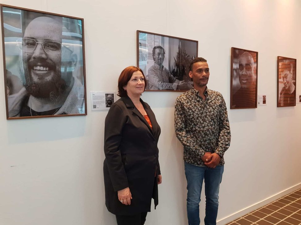 Foto hierboven: minister Helder en geportretteerde Orlando voor zijn foto, bij een expositie van mijn werk bij VWS juli 2023.